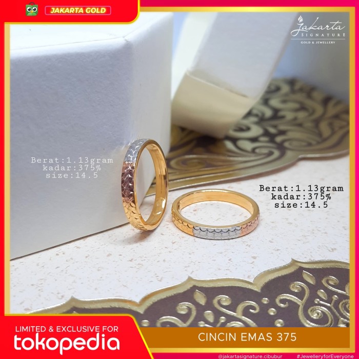 400.000 hingga jutaan rupiah tergantung beratnya. Rp 5,600,000.00 rp 5,400,000.00 tambah ke keranjang; Cincin tunangan/nikah/kawin emas kuning/putih perhiasan mas 75% couplerp12.110.000: